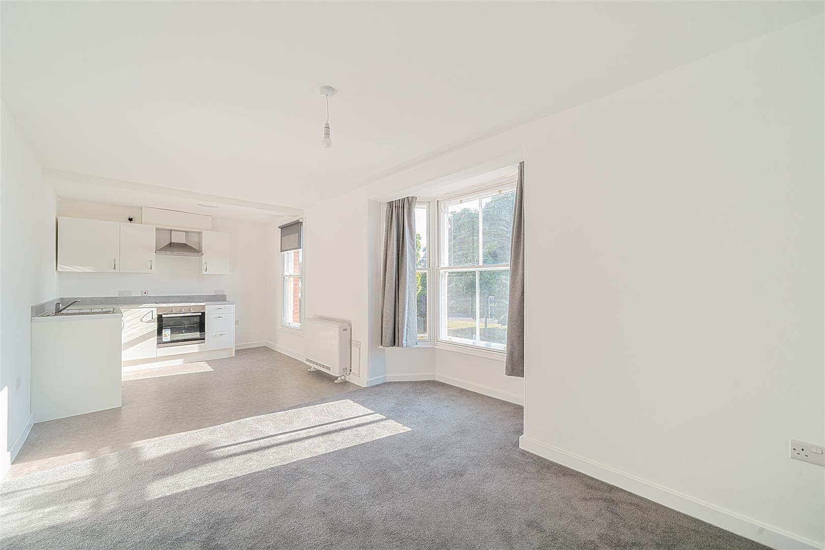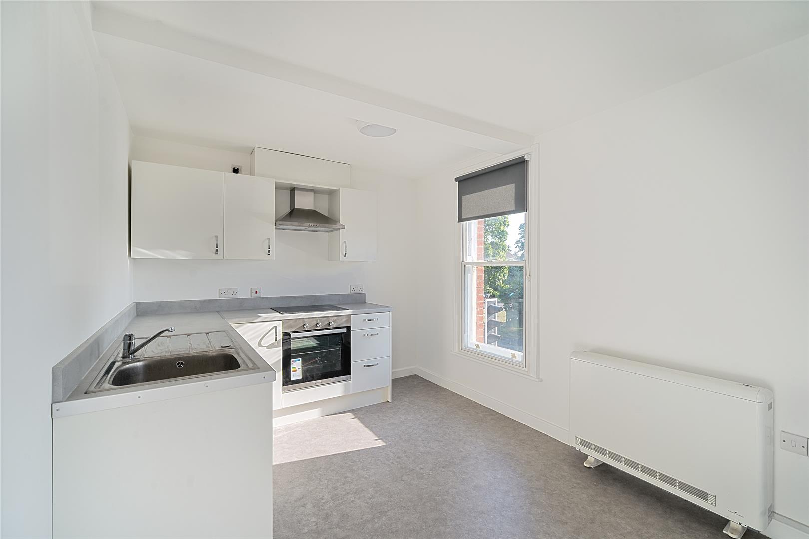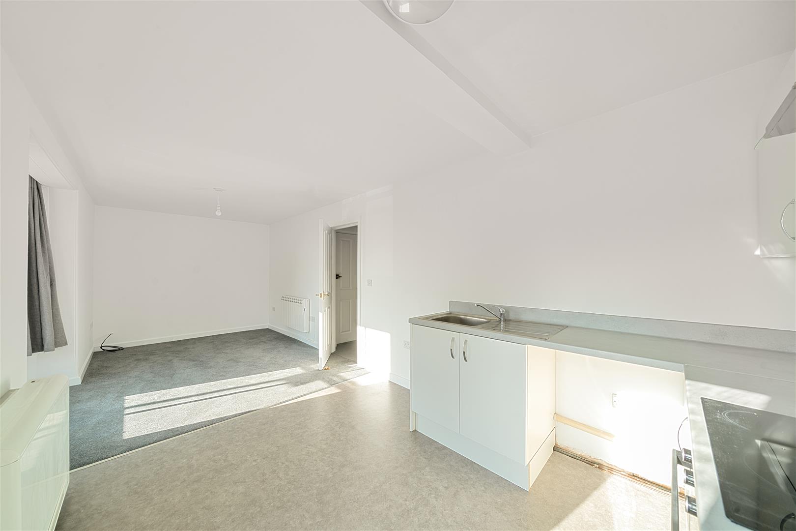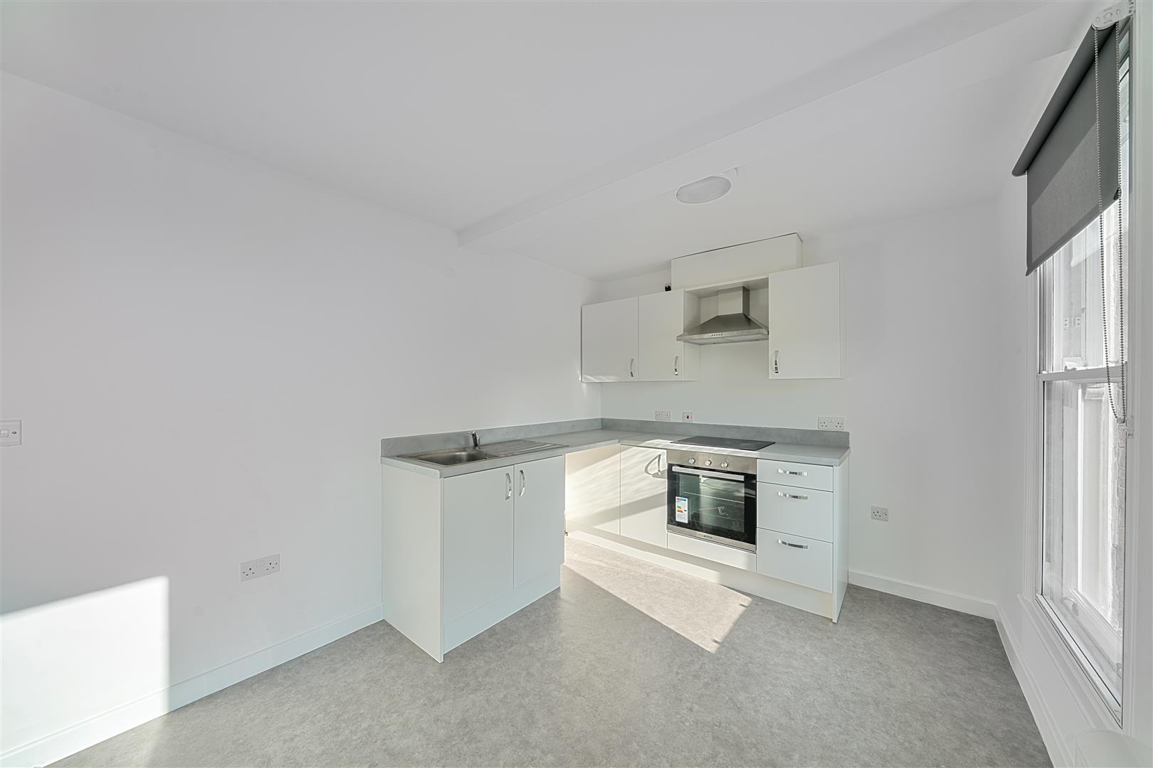 The flat is situated on the first floor and comprises a good-sized entrance hall with under-stair storage. This leads to the open-plan kitchen and lounge/dining area, which boasts a newly fitted kitchen with a ceramic hob and electric oven, as well as space and plumbing for a washing machine. Adjacent to this is the new bathroom, featuring a large thermostatic shower along with all new fixtures and fittings.