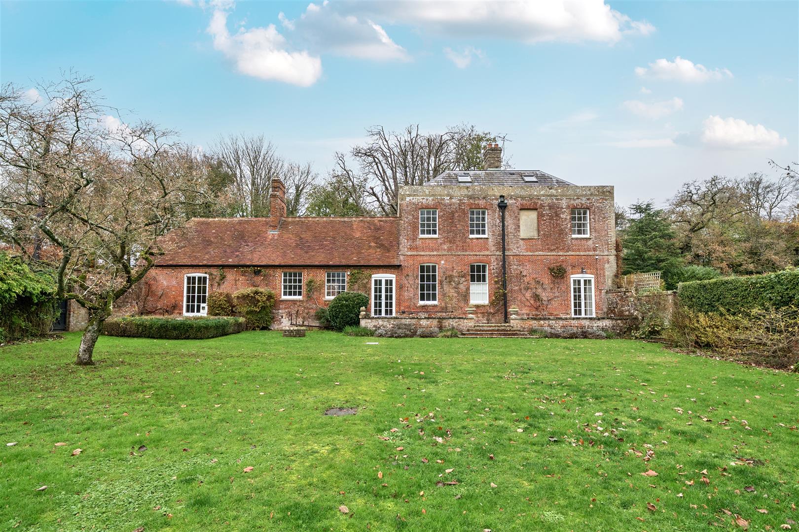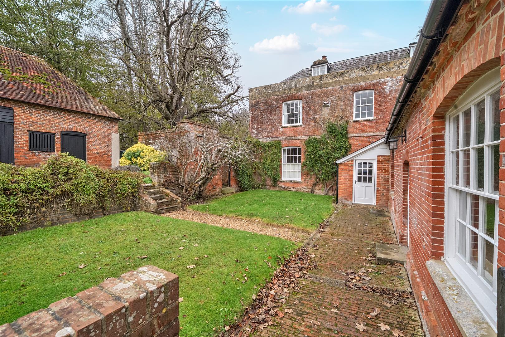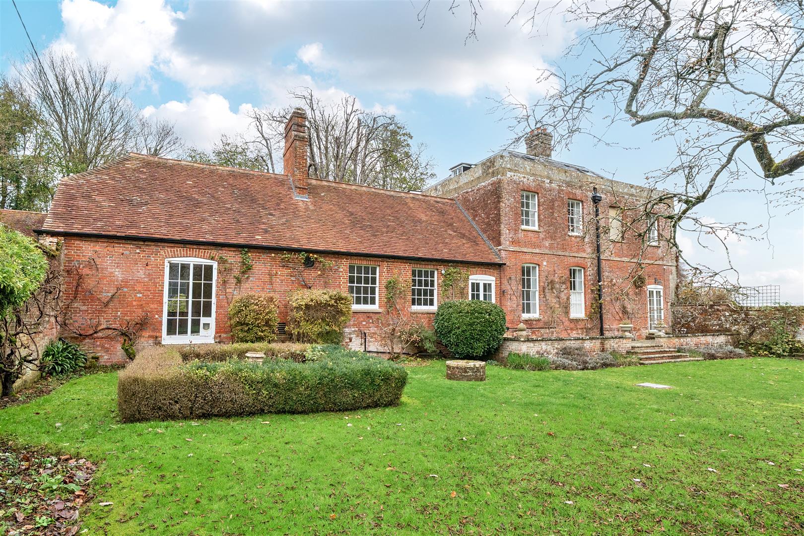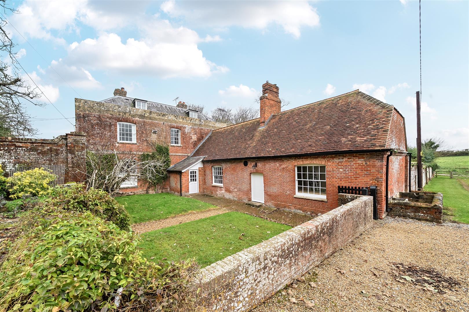 Charlton Manor Farmhouse is a stunning Grade II-listed seven-bedroom home with extensive gardens, modern amenities, and outbuildings, set in beautiful farmland.- Key Features