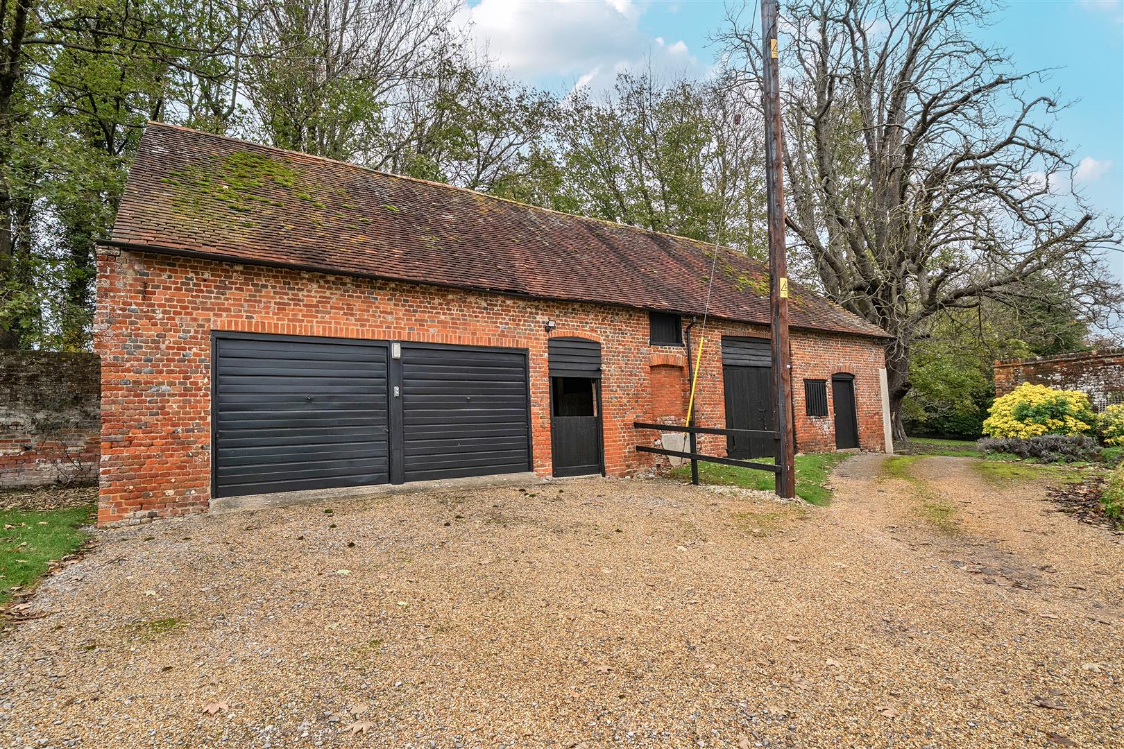 The grounds of the property also include several outbuildings. One of these is a double red brick garage with a concrete floor and up-and-over metal doors, which benefits from both power and lighting. Connected to the garage is a small stable, along with further storage areas. The second outbuilding is a raised barn, providing additional dry storage, and finally, there is a lean-to open-fronted storage area.