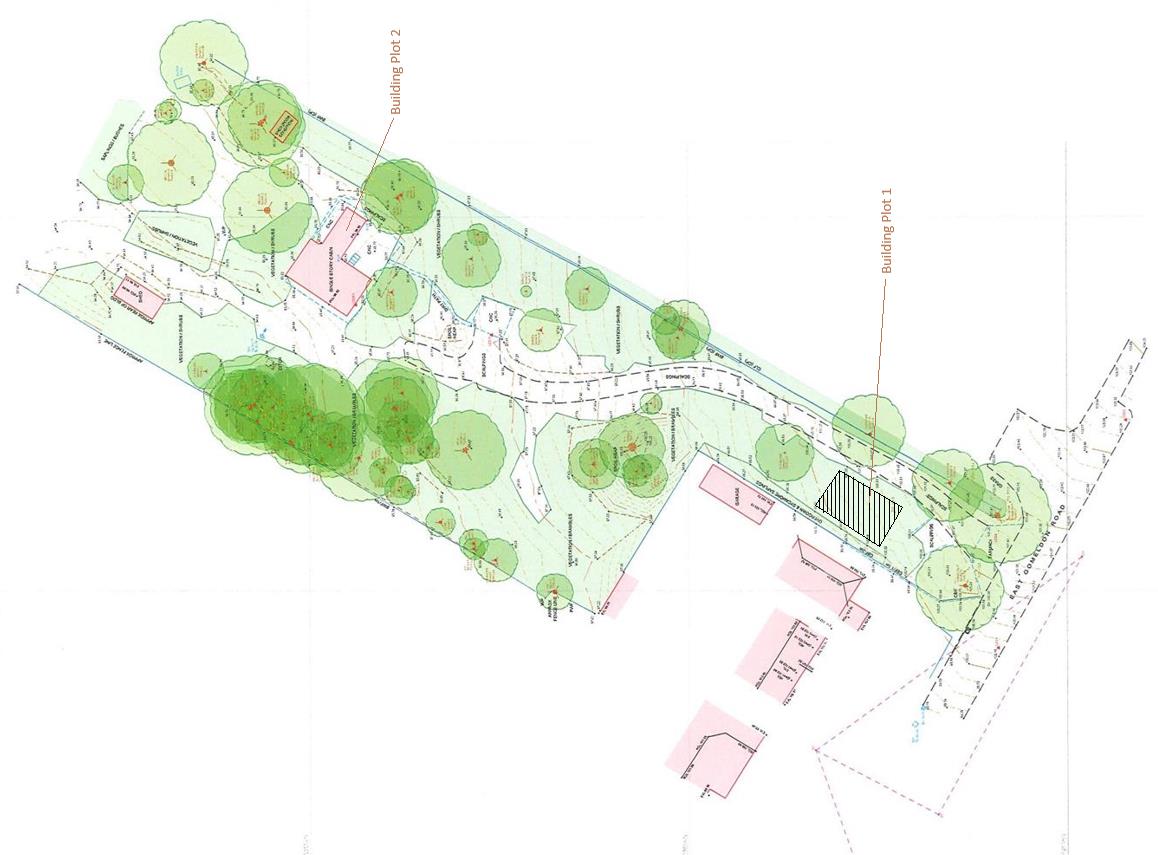 PL /2024/01561. The plans confirm that the new, replacement dwelling is to be sited roughly in the same position as the existing mobile home on the site, with some overlap, but is to be more centralised within the plot. It is depicted as a dwelling with 2 storeys and a maximum of 9.15 metres in height. However due to the natural topography of the site, which falls away from the road, the eaves height of the replacement dwelling will be roughly level with the road height and the ridge line will be just above the eaves line of the adjacent property to the west (221 East Gomeldon Road). There will be a long sweeping drive to this exceptional plot with potential for a very spacious house with 4+ bedrooms over the 2 floors together with garaging and ample parking.