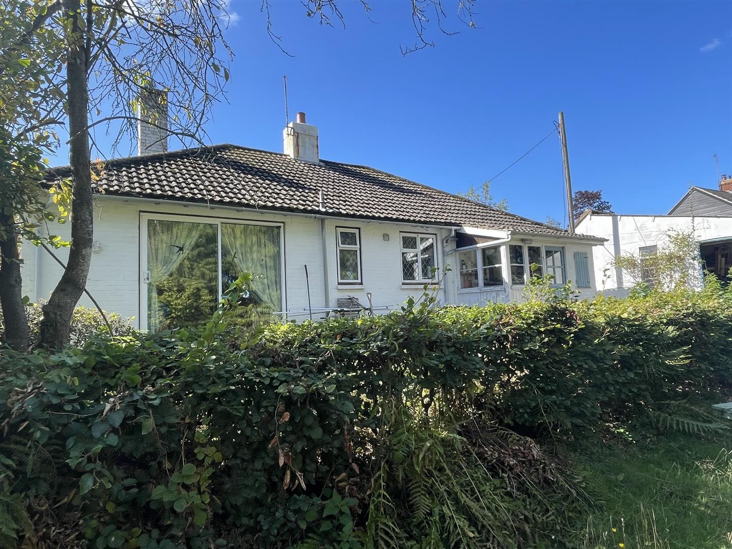 A character detached bungalow set in a very large plot and now in need of updating but offering terrific potential to alter and extend. There is possible potential to demolish the property and build two on the site (subject to planning permission). The garden extends to all sides and offers delightful aspect to the rear over the river. Further benefits are the double garage and studio behind. There is central heating by radiators and double glazed windows. The village has a local store and doctor’s surgery. Vacant possession is offered.