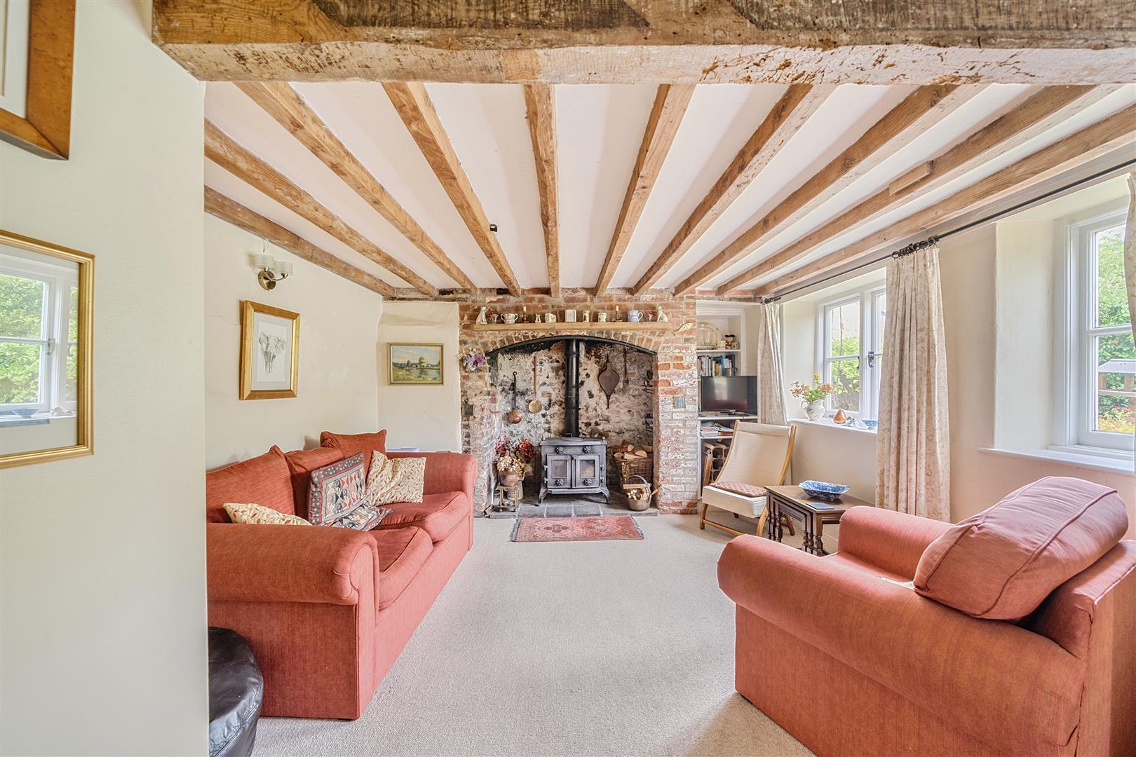 A wonderful character cottage situated in a highly sought after village together with garden, garage and further piece of land with river frontage. The cottage is full of character including inglenook fireplace with bread oven, wood burning stove and exposed timbers. There are two double bedrooms which could possibly be split into three and a bathroom on the first floor. On the ground floor is a kitchen/breakfast room and good sitting room. Heating is by night storage heaters. The gardens lie to front and side with part walled and part hedged boundaries. Offered with vacant possession.