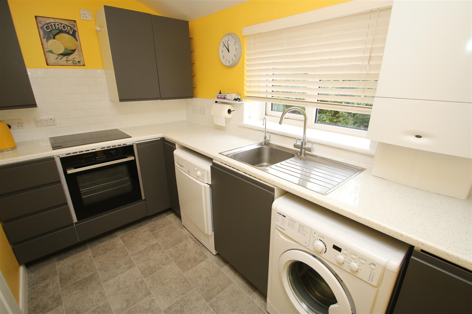 Fitted with base and wall units with work surfaces over, sink and drainer with mixer and drinking water tap under window to rear, space for electric oven with integrated four ring induction hob over, space for fridge/freezer, space/plumbing for washing machine, space for tumble dryer, wall mounted gas boiler for central heating/hot water system.