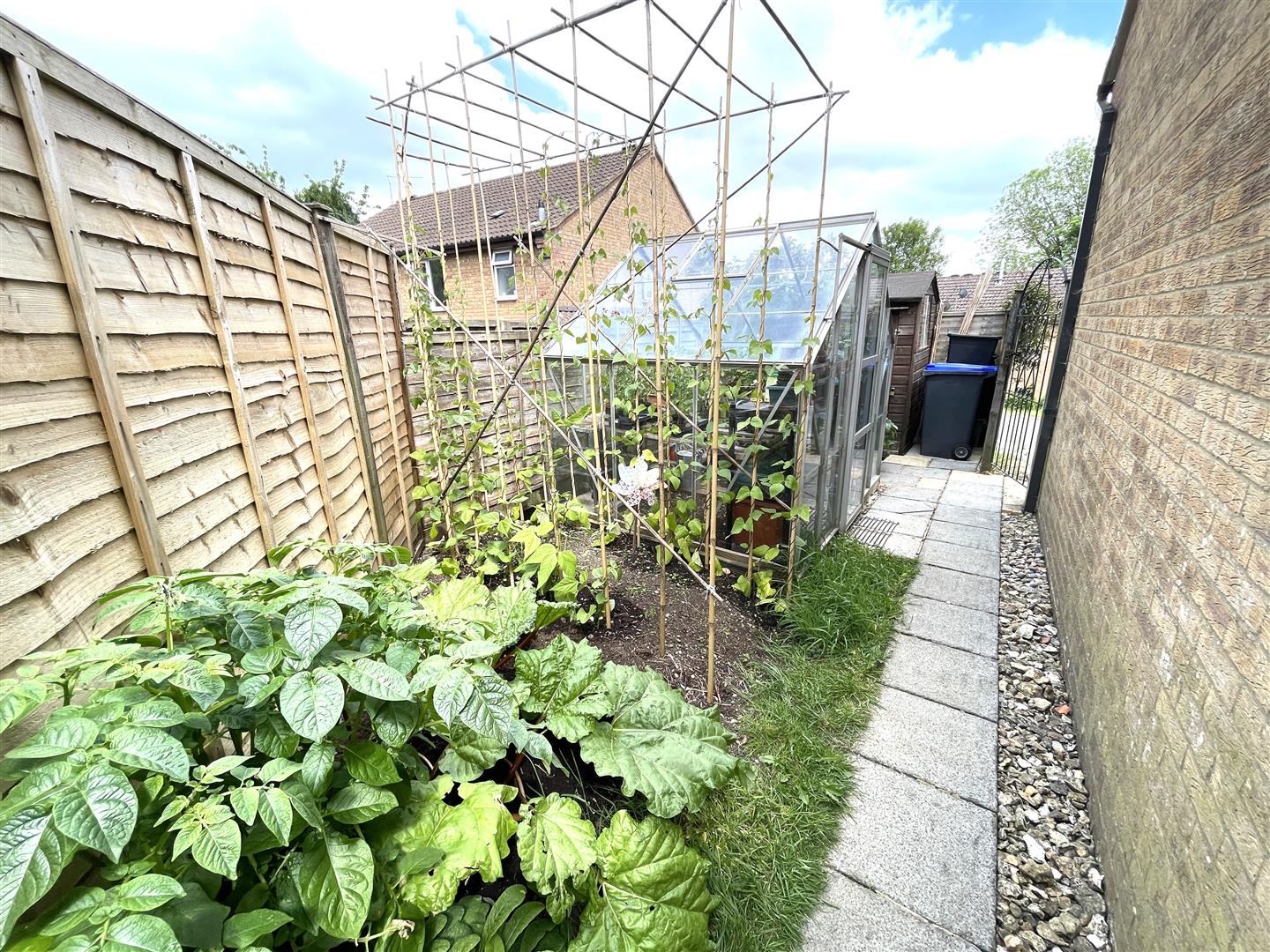 To the front of the house are parking spaces for two vehicles. Wrought iron pedestrian gate leads to side garden with timber shed, greenhouse, apple tree and vegetable area. Paved pathway continues to the rear garden which is enclosed by timber fencing. Large paved patio with brick built barbeque area, low brick wall and archway to astroturf seating area and further vegetable garden, flower beds, ornamental pond, climbing roses and shrubs.