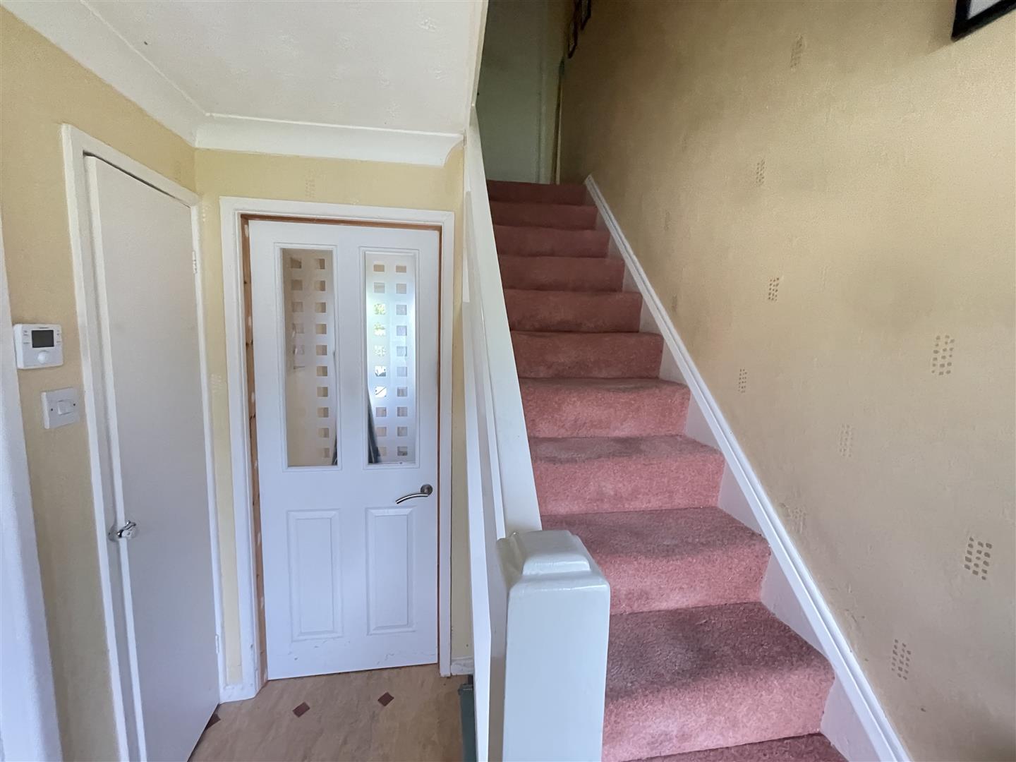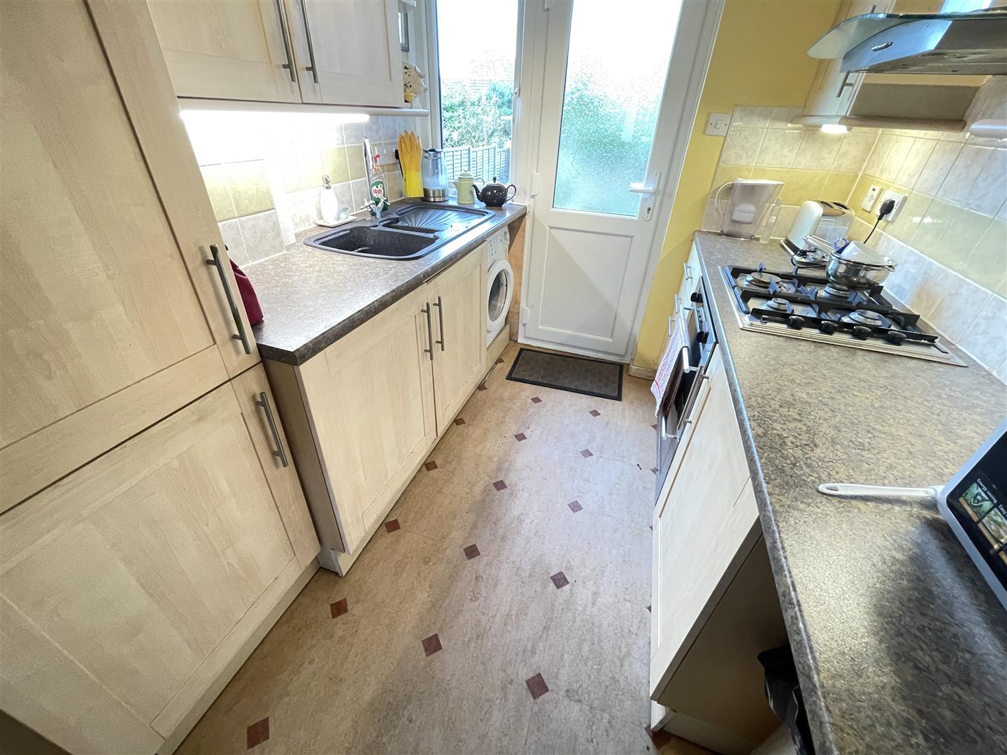 The house is entered via a small entrance porch which has a half glazed front door to the Hallway. This has stairs to the first floor with cupboard beneath and there is also a full height coats cupboard. Doors lead to the Sitting Room and Kitchen. The Sitting room is double aspect with double doors to the rear garden and an inset coal-effect gas fire with marble and wooden surround. The kitchen has base and wall mounted cupboards and drawers, shelved larder cupboard with gas meter, work surfaces with inset one-and-a-half bowl sink unit with mixer tap over, four ring gas hob with extractor hood over, built-in oven, space and plumbing for washing machine, built-in fridge-freezer, part-tiled walls, under counter lighting and a door to the garden.