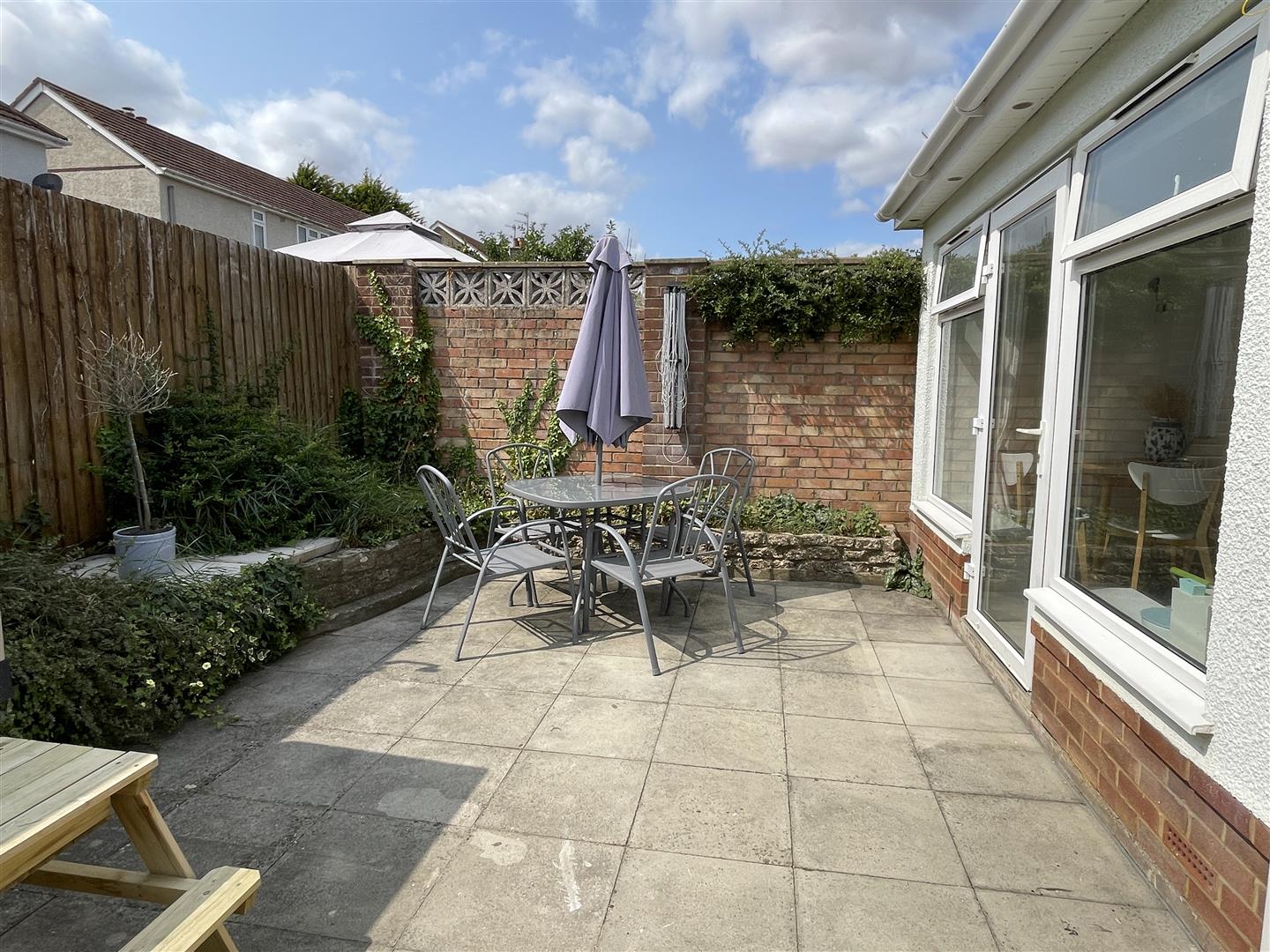 To the front of the property there is parking for two vehicles with walling to sides and space for wheelie bins. The courtyard to the side has fencing and a water tap and also pedestrian access to the rear garden which is laid to paving slabs with raised borders to side and rear. This is enclosed by brick walling and timber fencing. Outside water tap.