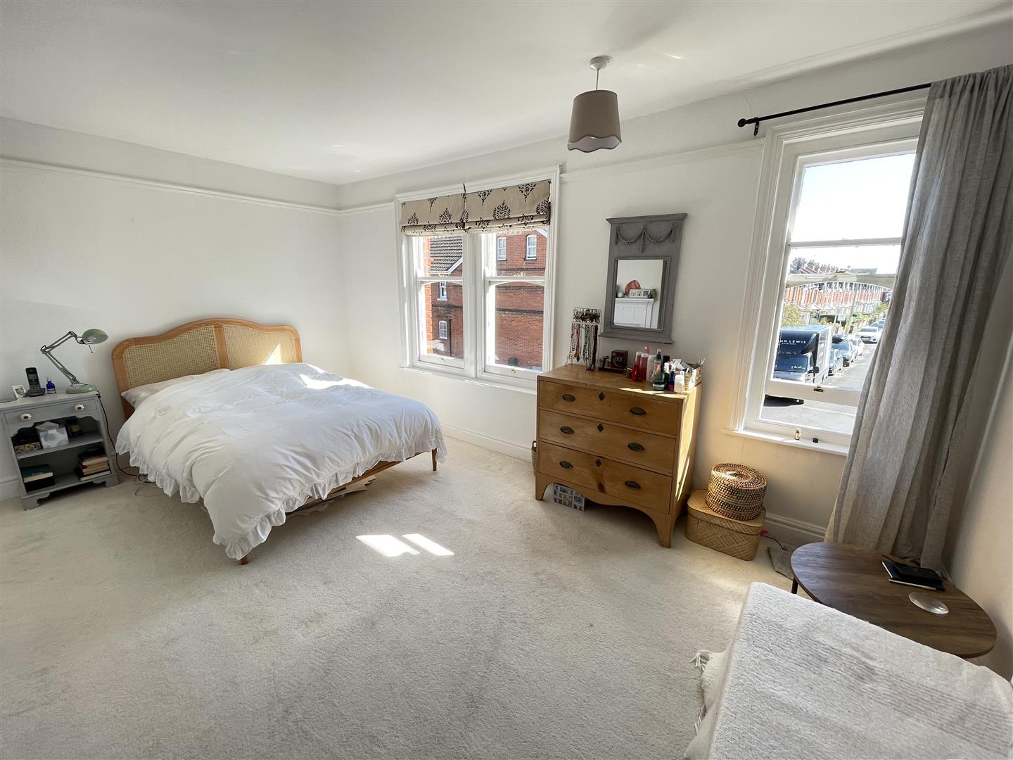 On the first floor, the main bedroom has a cast iron fireplace and two windows which provide southerly views along the length of Albany Road. There are two further double bedrooms, a single bedroom and a family bathroom which has a white three piece suite.