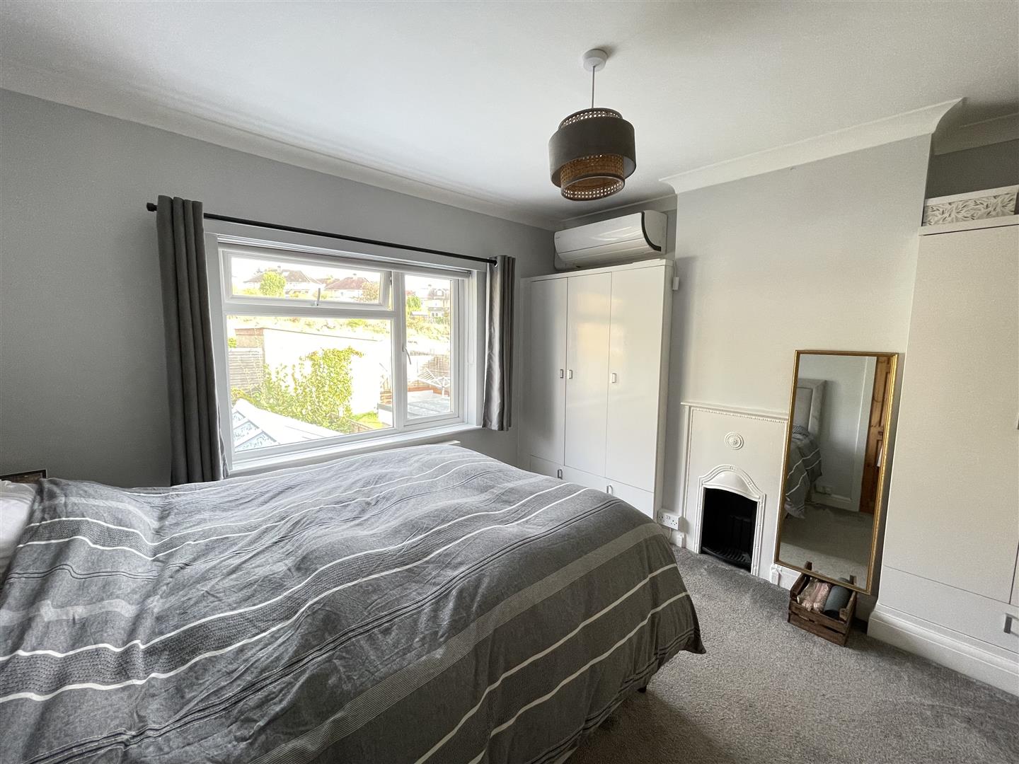 On the first floor are three bedrooms with the two double bedrooms having fitted wardrobes and cast iron fireplaces. There is a family bathroom with a rainfall style shower over the bath, a wash hand basin with cupboard under and low level sensored security lighting. The boiler was replaced within the last two years and is in a cupboard on the landing.