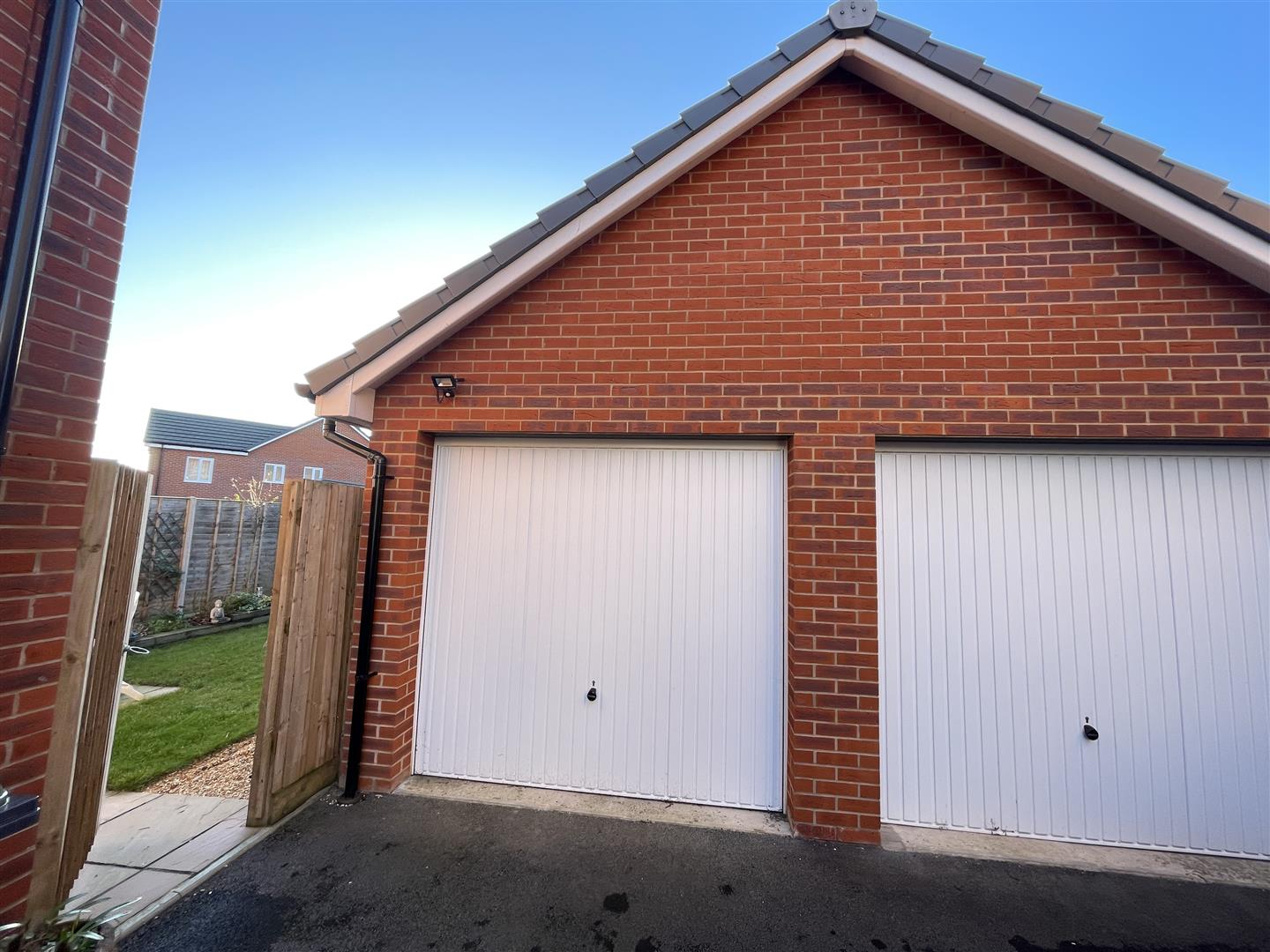 To the rear is a well stocked garden with lawn and patio and an outside tap and light. There is a side access gate that leads to the driveway which provides off road parking for two cars and there is a single garage. This measures 5.51m x 2.76m and has power and light.