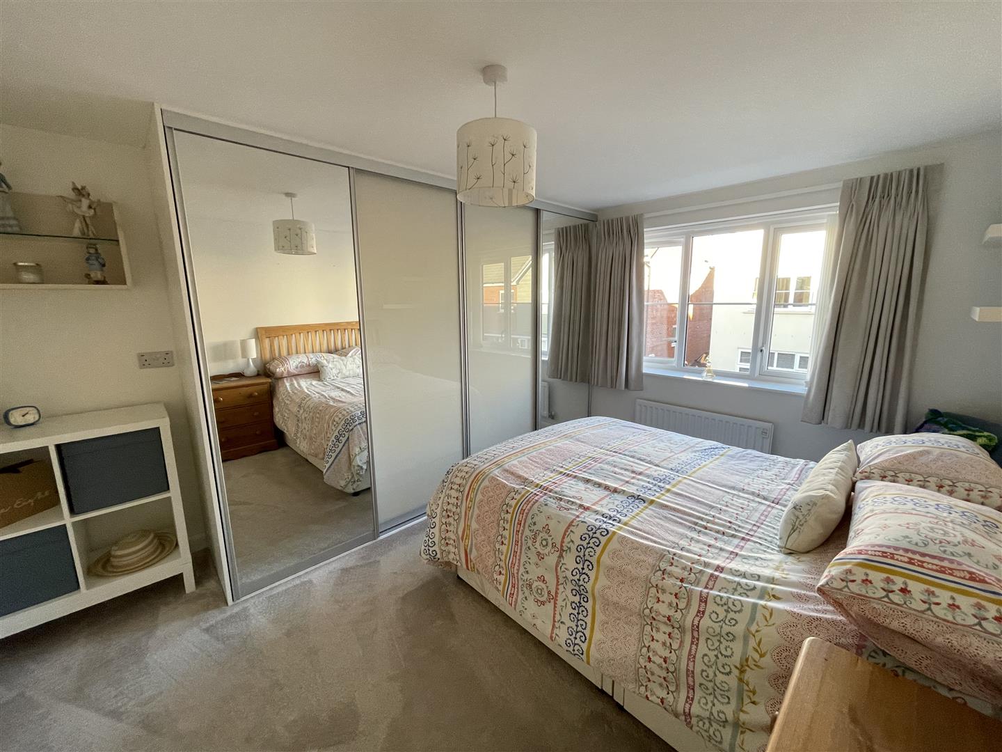 On the first floor, the main bedroom has two sets of mirror fronted, fitted wardrobes and an en suite shower room. There is a further double bedroom with fitted wardrobes and bookshelves and there is a good size single bedroom with a storage cupboard. The family bathroom has a white suite with a shower over the bath.