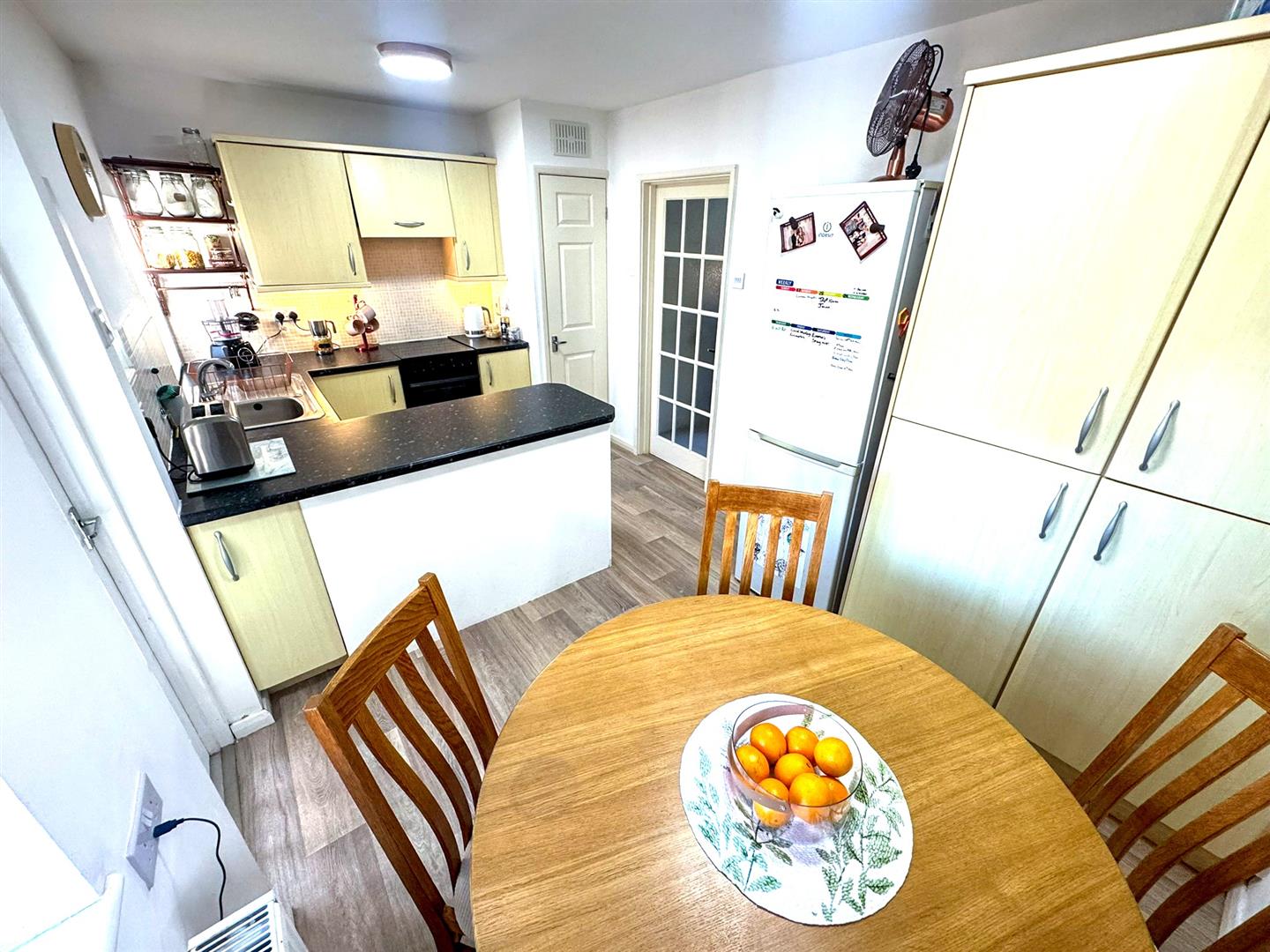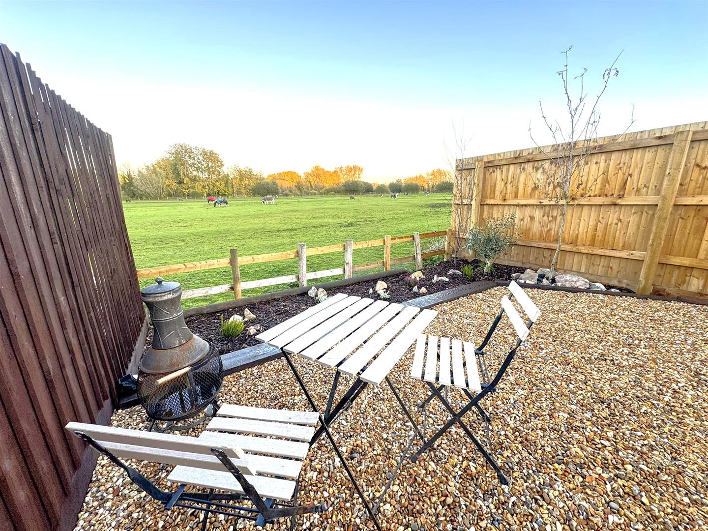 To the rear of the house is an access driveway leading to the parking space behind which is a wooden garden store. Steps lead down to the long garden which is laid to lawn with new fencing to both sides. At the rear is a mature silver birch tree, greenhouse and steps up to a gravelled sitting area with lovely views over fields beyond. There is also a further storage shed.