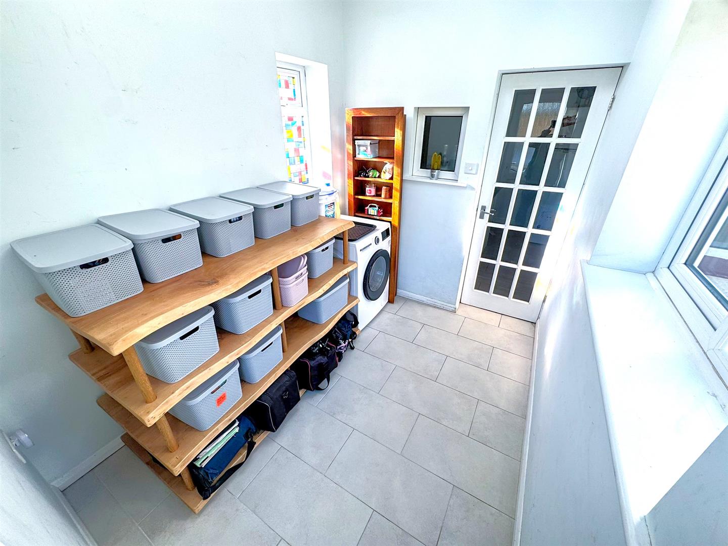 There is a covered porch which gives protected access to the front door leading into the hall with stairs to the first floor. The sitting room has an open brick fireplace with slate hearth and wooden mantle, picture rail, deep understairs storage cupboard and window overlooking front garden. A door leads through to the kitchen area which has a range of worksurfaces with base and wall mounted cupboards and drawers, built in single drainer sink unit, electric cooker with extractor hood over, three windows to rear, door to utility room, floor to ceiling larder cupboards, tiled splashbacks, wood effect flooring and cupboard housing gas fired boiler for heating and hot water. The utility room offers terrific storage, door to garden, space and plumbing for washing machine and a tiled floor.