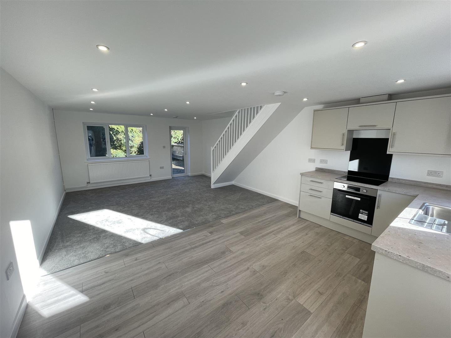 The house has been refurbished by the present owner and is marketed in excellent order throughout. The ground floor has an entrance porch which leads to the open plan sitting/dining room which has a refitted kitchen area, There is a good range of base and wall units with a new integrated oven, hob and extractor with space for a fridge/freezer and washing machine. There is a fully glazed door that leads in to the rear garden and stairs lead from this room to the first floor.